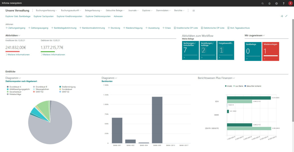 Dafür stehen verschiedene Werkzeuge bereit, wie z.B. ein Auftragsprotokoll oder eine Testrechnung. Die durch die Auftragsabrechnung erzeugten Buchungen gehen direkt in die integrierte Finanzbuchhaltung oder in ein angebundenes externes Finanzwesen. Ebenso lassen sich alle gehaltsrelevanten Zuschläge an ein Personalverfahren übergeben. Für einen einfachen Überblick über Kosten und Ressourcenverbräuche zu Einzel- und Daueraufträgen stehen zudem verschiedene Möglichkeiten der Auswertung direkt im System zur Verfügung, z. B. eine Analyse zu Leistungsarten oder Objekten.