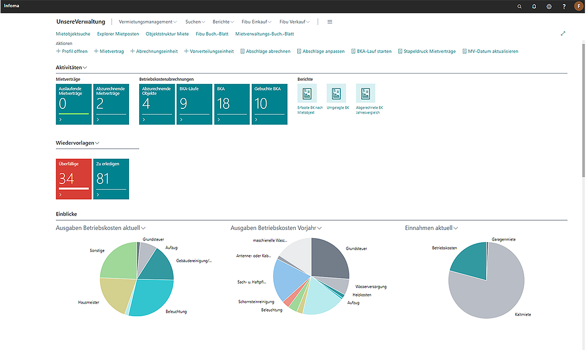 Mit unserem Infoma Liegenschafts- und Gebäudemanagement bieten wir eine vollständig digitale Lösung für das Vermietungsmanagement. Workflowbasierte Rechnungsverarbeitung, detaillierte Betriebskostenabrechnung und flexible Mietvertragsverwaltung stehen zur Verfügung.