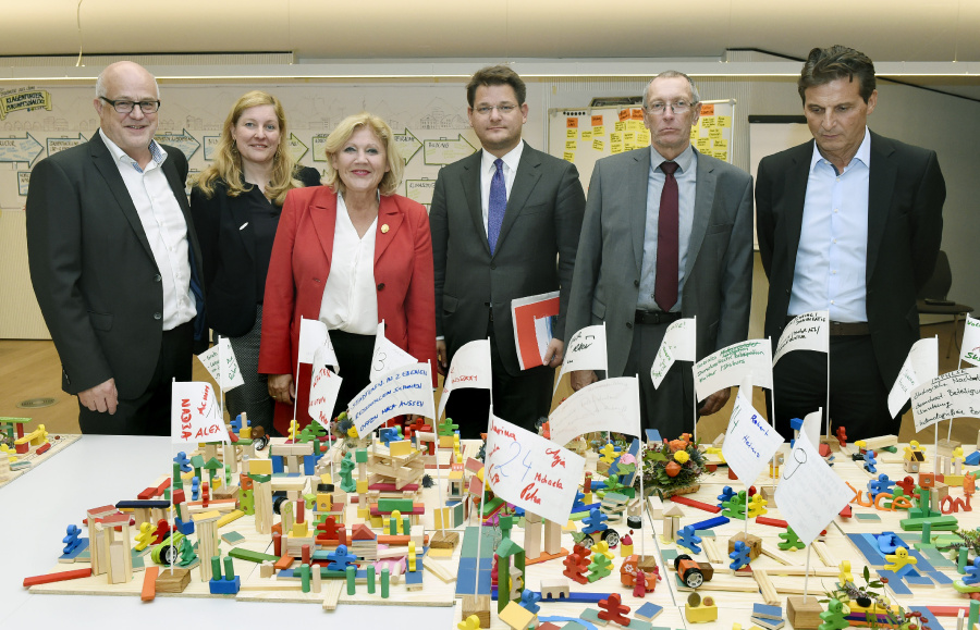 Am nächsten Tag waren die Bürgerinnen und Bürger an der Reihe – hier waren Smart City, neue Technologien etc. kaum ein Thema, hier standen das generationenübergreifende Miteinander und das Schaffen von Voraussetzungen dafür, der Klimaschutz und Klagenfurt als „Stadt der Begegnung“ (wie auch im Leitbild festgelegt) im Mittelpunkt. Auch diese Ideen wurden mit Bausteinen umgesetzt. Zum Abschluss der beiden Tage gab es Dienstagabend eine Podiumsdiskussion mit Bürgermeisterin Dr. Maria-Luise Mathiaschitz, Universitätsrektor Dr. Oliver Vitouch, Stadtwerke-Vorständin Mag. Sabrina Schütz-Oberländer, Philosoph Dr. Konrad Paul Paul Liessmann, Lakesidepark-Chef Mag. Hans Schönegger und Franz Palle vom Softwarespezialisten AXIANS INFOMA.