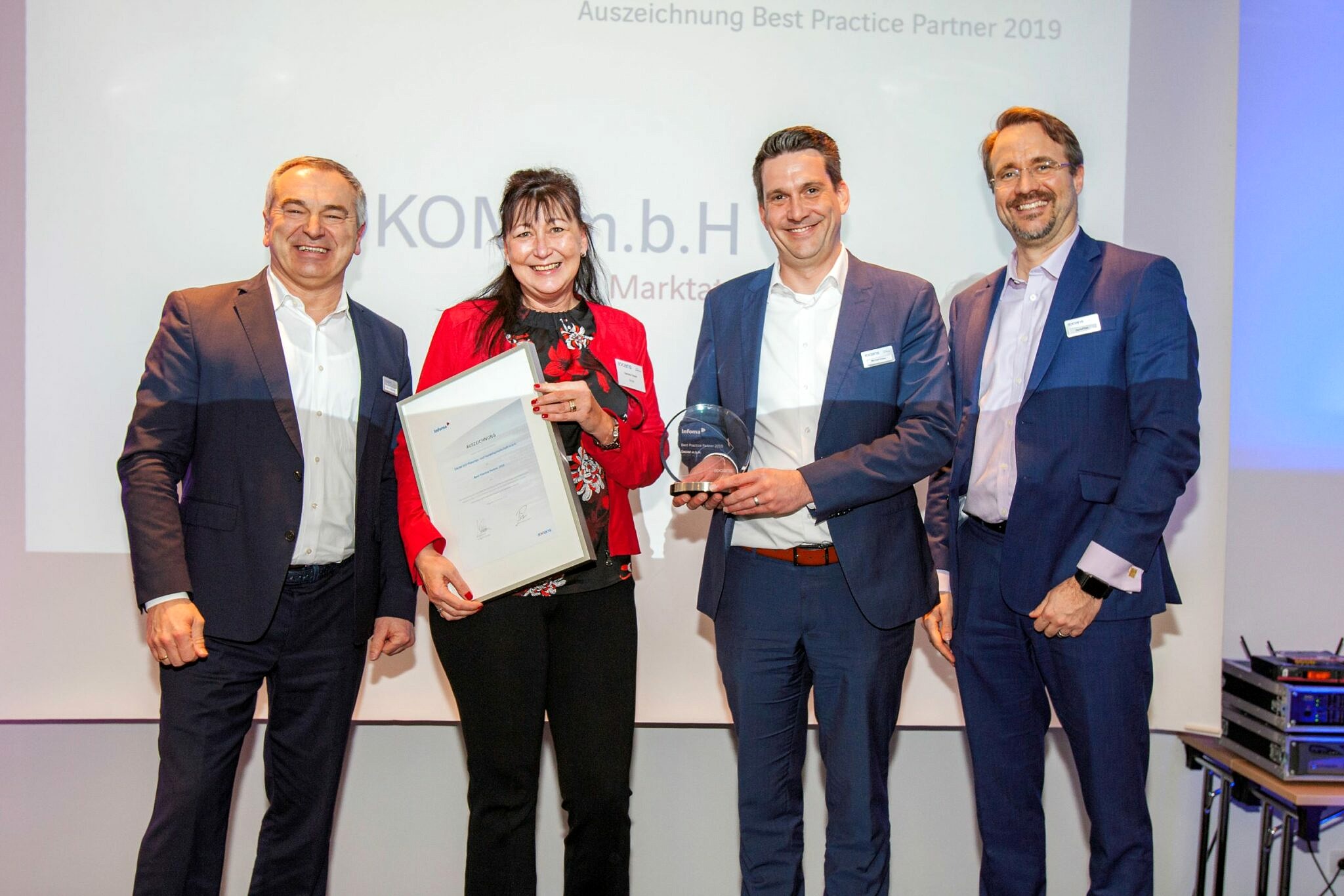 Mehr als 70 erfolgreiche Umstellungen auf Infoma newsystem im vergangenen Jahr – damit hat sich der Axians Infoma-Partner ÖKOM EDV Planungs- und Handelsgesellschaft m.b.H. (seit 01.07.2020 EUVIC Software GmbH) die Auszeichnung als Best Practice Partner 2019 in der Kategorie Marktattraktivität gesichert. Verliehen wurde das Prädikat für besondere Leistungen im Rahmen des jährlichen Partnergroup Strategie- und Managementmeetings im vergangenen Februar.