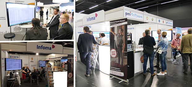 Auf der am 29. und 30. Juni stattgefundenen Kommunalmesse in Salzburg bot Axians Infoma wieder allen interessierten Verwaltungen Gelegenheit, sich live von den leistungsstarken Möglichkeiten des Produkt- und Leistungsportfolios Infoma newsystem ein Bild zu machen. Mit dabei war auch wie im vergangenen Jahr der Softwareanbieter pmi und präsentierte seine an den Infoma newsystem Rechnungsworkflow angebundene integrierte Lösung DocuWare. Das Resümee ist positiv: Auf dem neu gestalteten Stand waren zahlreiche Kärntener Gemeinden als Besucher vertreten und bekundeten Interesse an den innovativen und zukunftsfähigen Lösungen. Axians Infoma sagt danke für Ihren Besuch!