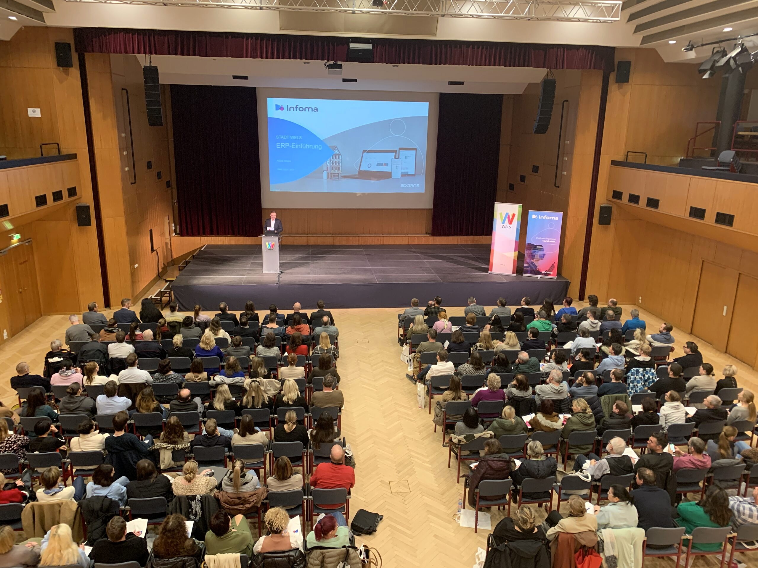 Bei der Kick-Off Veranstaltung zur Einführung unserer Softwarelösung als neues ERP-System in der Stadthalle Wels waren am Dienstag, dem 23. Januar, mehr als 160 Mitarbeitende der Stadt Wels geladen, um sich einen Einblick in den aktuellen Projektstand zu verschaffen. Neben informativen Live-Einblicken in die Softwarelösung und aktuellen Entwicklungen gab es auch Videobotschaften anderer Städte sowie einen detaillierten Blick auf den Meilensteinplan. Ein informativer und inspirierender Tag für das gesamte Team!